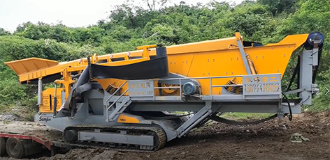 履帶式移動破碎站,液壓驅動,在山地、平地都能行走自如,爬坡能力強,爭分奪秒投入開采作業。
