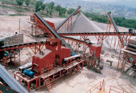 原料的級配也將影響總體參數,對于從采石場爆破生產的巖石,應按照巖石的最大粒度選擇初級破碎機;對于砂夾卵石層原料,則應根據級配曲線選擇初級破碎機,并應配置預篩分機械;若原料中含泥量,含水量較高時,應考慮采用濕式破碎、篩分作業流程。總的來說,要根據原料的粒度選擇設備的工藝流程和各部分的生產率,要根據原料的硬度來選擇粗破碎設備的形式。